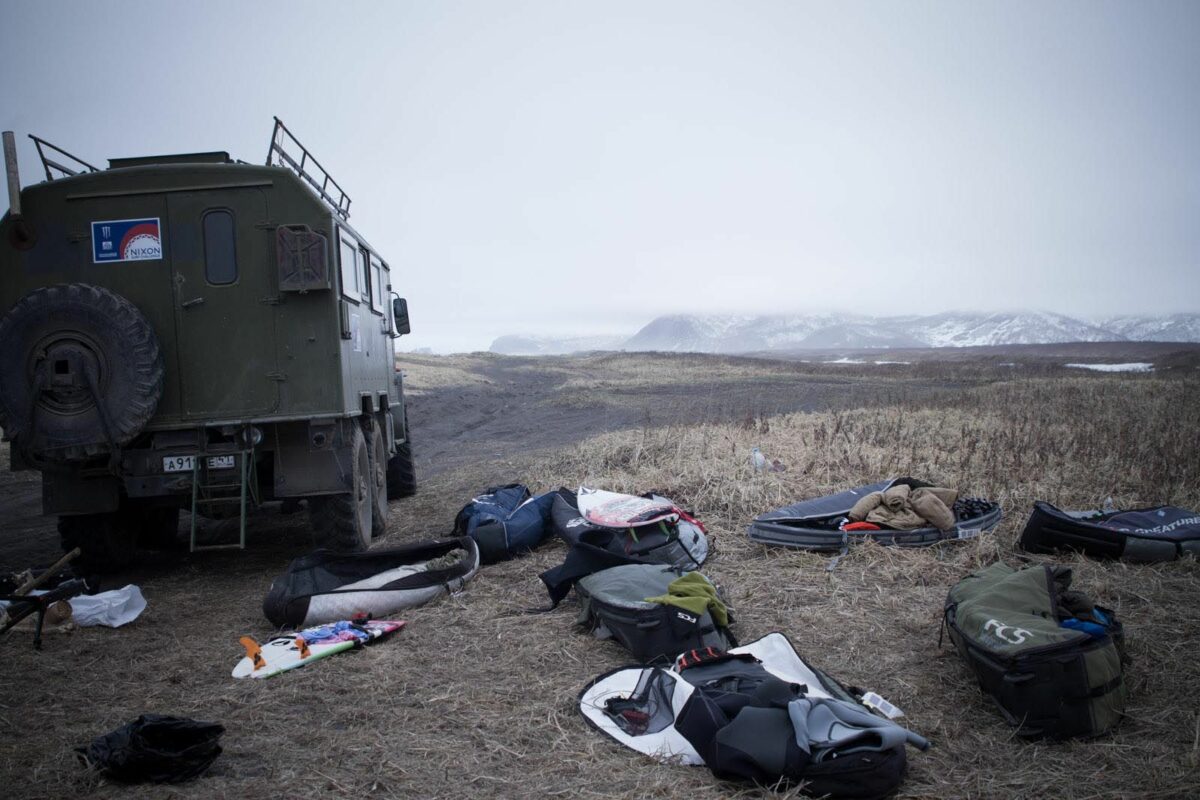 Ils y sont. Dix surfeurs européens, quelque part dans la province russe du Kamchatka pour l’édition 2014 du Nixon Surf Challenge. Comme prévu, le dépaysement est total, depuis l’arrivée à l’aéroport jusque dans les vastes plaines désertes dans lesquelles le convoi s’est engagé. Malgré la température de l’eau qui ne dépasse pas les 3°C et des conditions médiocres, la compétition a déjà commencé. Le swell étant annoncé à la hausse pour demain matin (mercredi) avec du vent offshore, le réveil est prévu à 4h pour pouvoir scorer dès les premières lueurs du jour.