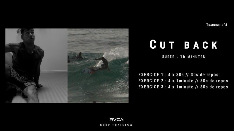 Si de nombreux tutos existent déjà sur internet sur la partie technique, aucune vidéo jusqu’à présent n’abordait le cut-back d’un point de vue préparation physique. C’est pourquoi, RVCA et Patrick Beven, en collaboration avec Surf Session, ont décidé de vous proposer trois rapides exercices physiques pour vous préparer au mieux à ce moment crucial. Trois exercices qui devront vous permettre d’appréhender au mieux un moment pas évident mais pourtant déterminant.