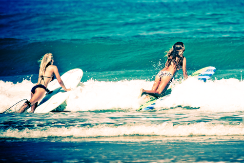 Les filles font en général (attention des exceptions existent, j’en ai rencontrées)du bien au line-up. Moins agressives que les barbus, elles pacifient les rapports à l’eau. De plus, quand elles sont jolies (souvent le cas)et en bikini, c’est très joli et ça déconcentre… on peut en profiter pour chopper la bombe (la vague !)pendant que les collègues perdent un oeil. En plus elles surfent de mieux en mieux : que du bon… à part les coquinettes qui profitent de leur statut pour snaker mais après tout c’est de bonne guerre !