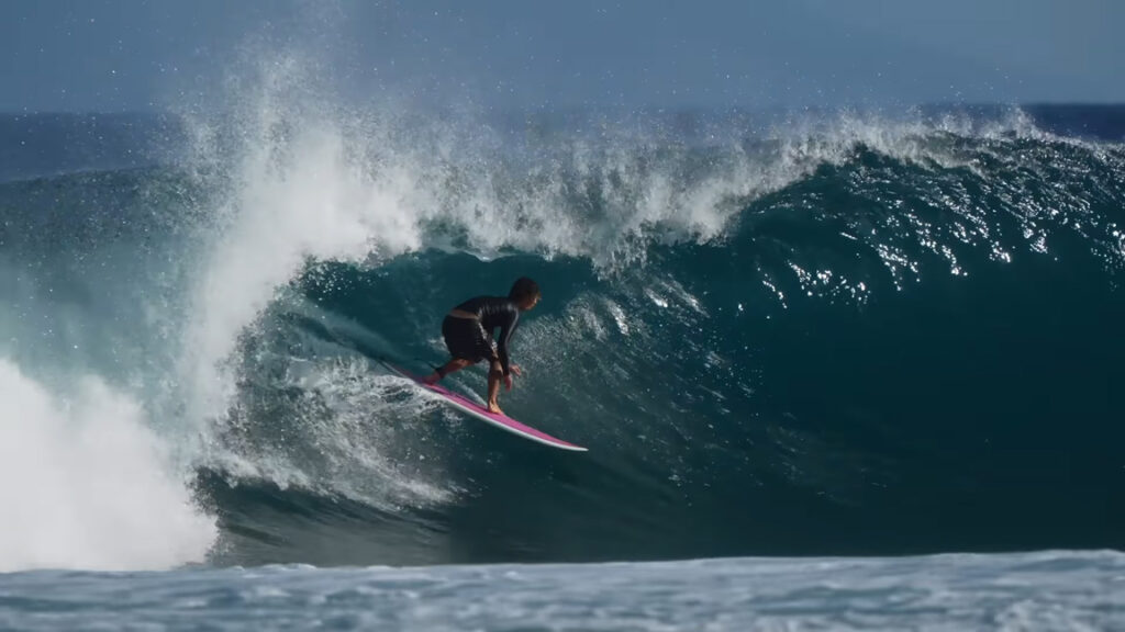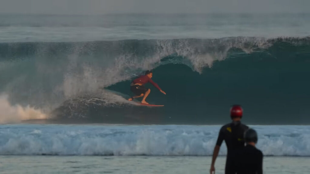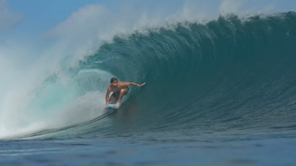 La pleine saison indonésienne attire toujours les gourmands. Parmi les plus insatiables en matière de tubes, Mason Ho a depuis longtemps ses marques à Desert Point. Sa folle technique en grab-rail (main avant ou main arrière, peu importe) y fait toujours des miracles. Cette année il voyage avec le jeune hawaiien Luke Swanson (le goofy avec sa planches rose ou bleue), et retrouve de vieux habitués comme Ozzie Wright, Kekoa Bacalso, Tosh Tudor ou Adam Crawford. Tous s’envoient des bornes et des bornes de barrels comme on fait des tout droits dans l’ouverture… Ah les goinfres !