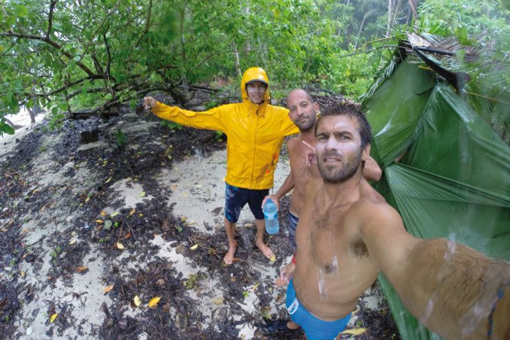 Non, Gwalaz (leur trimaran) a été envoyé aux Salomons dans un conteneur avec leurs boards etc. Ils ont tout retrouvé sur place avant l’aventure 😉