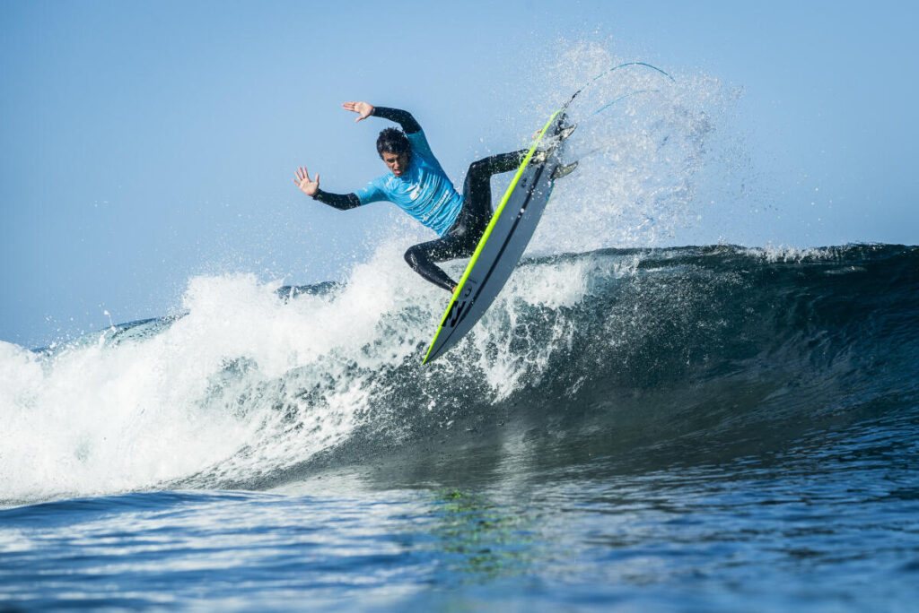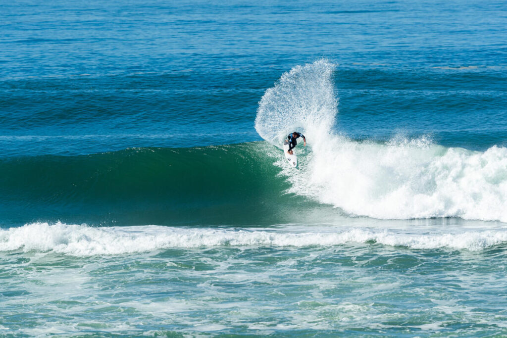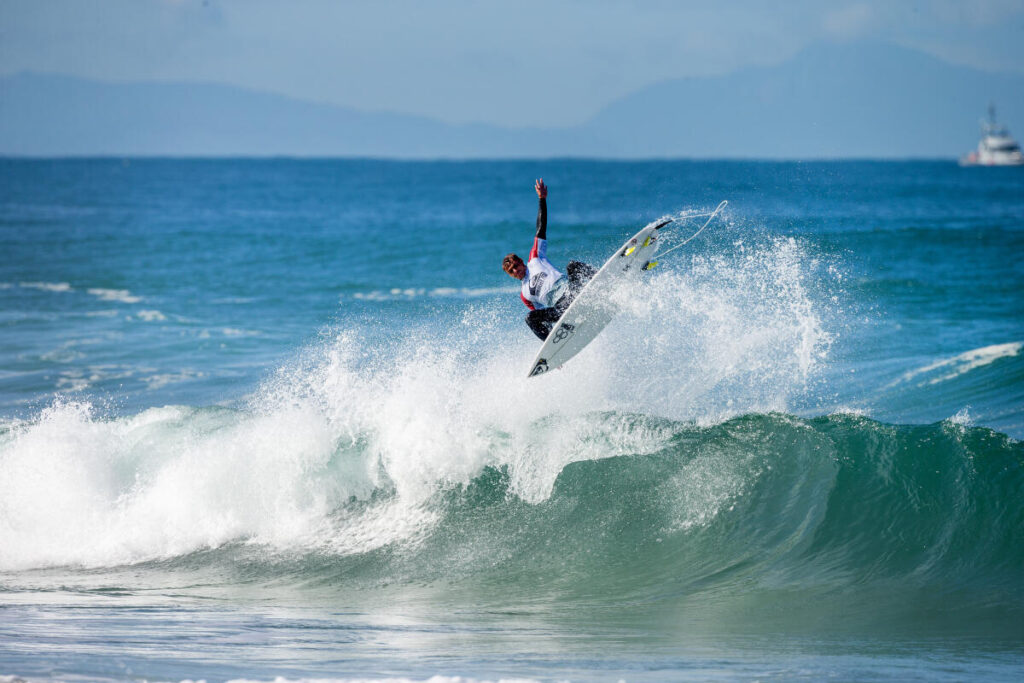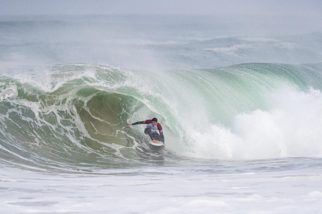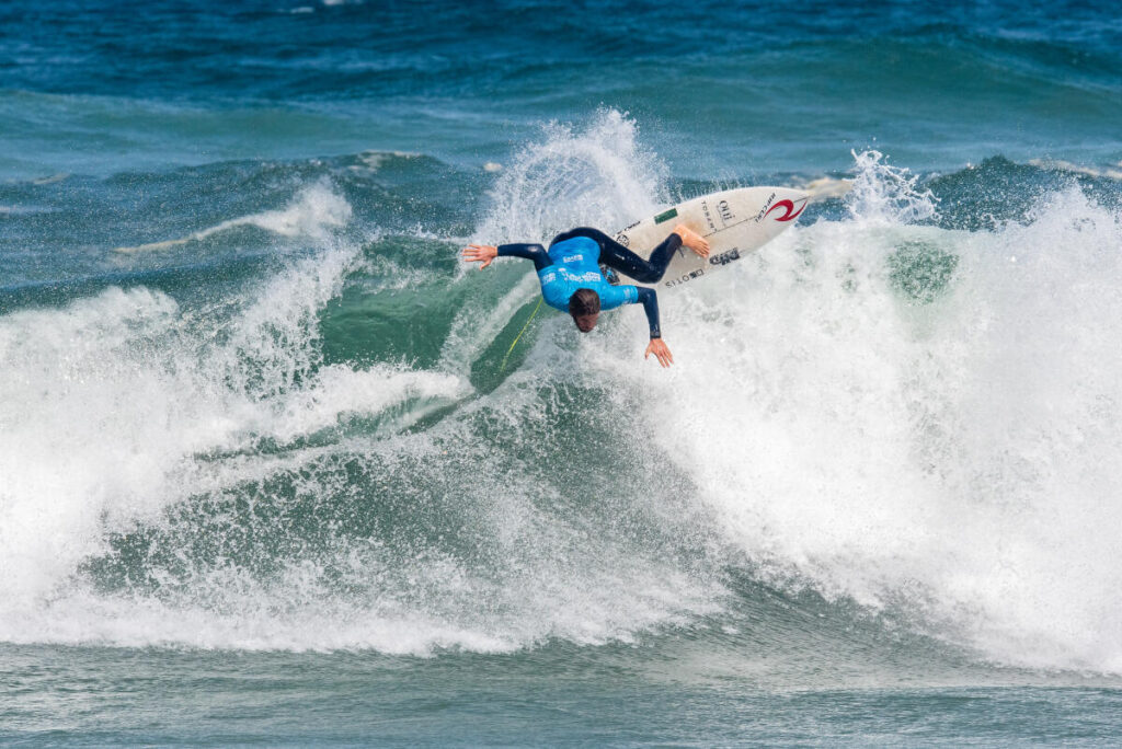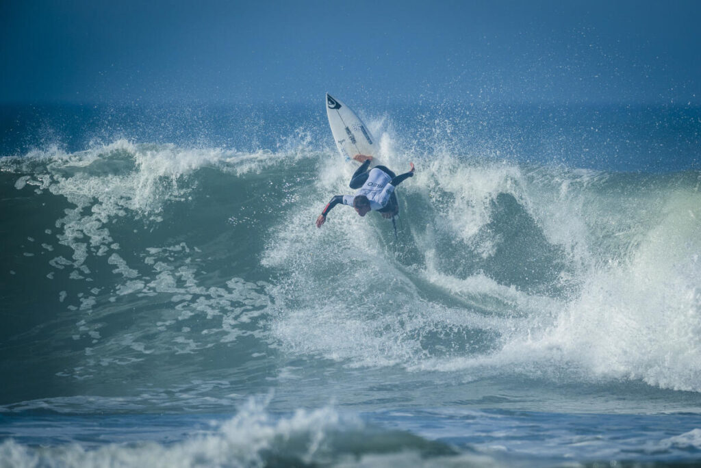 L’année dernière, alors qu’il n’était pas qualifié pour les Challenger Series, le Landais a évidemment pris sa place « d’alternate« (remplaçant d’un surfeur CS non présent) à coeur. Durant les trois premiers événements il s’est accroché à la 25e place puis au Portugal, sur la droite d’Ericeira, Joan a montré la puissance de son backside en signant une 9e place. Dans la foulée, il a fini 3e au Brésil mais sera malheureusement éliminé au premier tour à Hawaii. Qu’importe, le goofy s’est requalifié pour la saison suivante. Évidemment, il a quand même tenu à faire les QS européens et obtenu une double qualification via ce circuit. De plus, Joan a reçu une wildcard en mars pour participer au Pro Peniche et une fois encore le champion du monde ISA 2021 a fait le show, en sortant notamment le champion du monde 2022, Filipe Toledo.