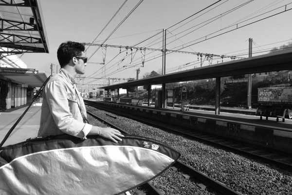 Tout paniqué je fini par monter dans le train en cachant le boardbag…