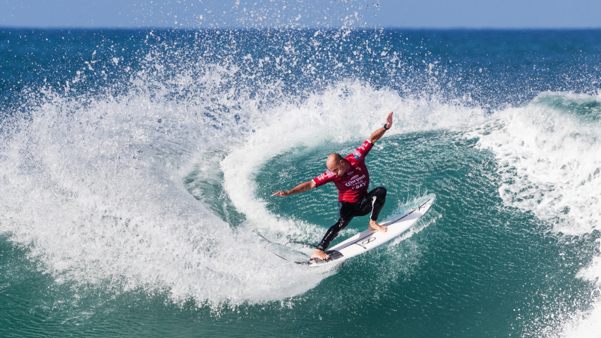 Kelly Slater avait sans doute un petit compte à régler avec Caio Ibelli, qui avait laissé entendre qu’il méritait plus la wildcard pour blessure qu’un champion du monde vieillissant et abusant de son statut… Pour leur deuxième confrontation de l’année, le King a repris sa couronne. Il s’était fait sortir par le brésilien à Margaret River, donc vivement la belle !