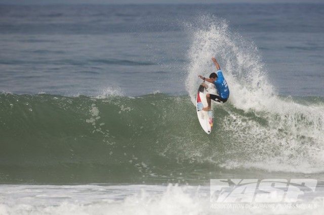 Sur un swell déclinant mais dans des vagues techniques, le Brésilien gagne devant ses compatriotes et passe en tête du classement provisoire ASP...