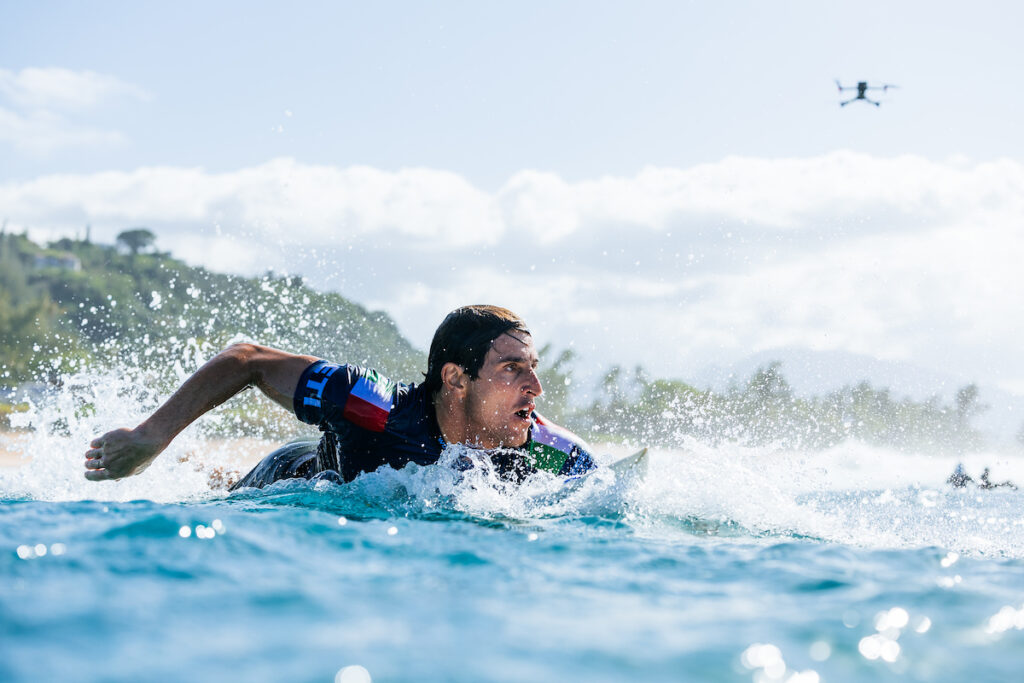 L’autre brésilien qui atteint les demies n’est autre qu’Italo Ferreira. Seul membre du top 5 2024 à atteindre les quarts, il lance très bien sa quête d’un nouveau titre mondial. Seul Mamiya a pu le battre aujourd’hui, dans une série qui le voit rejoindre la finale avec deux 9 dans l’escarcelle.