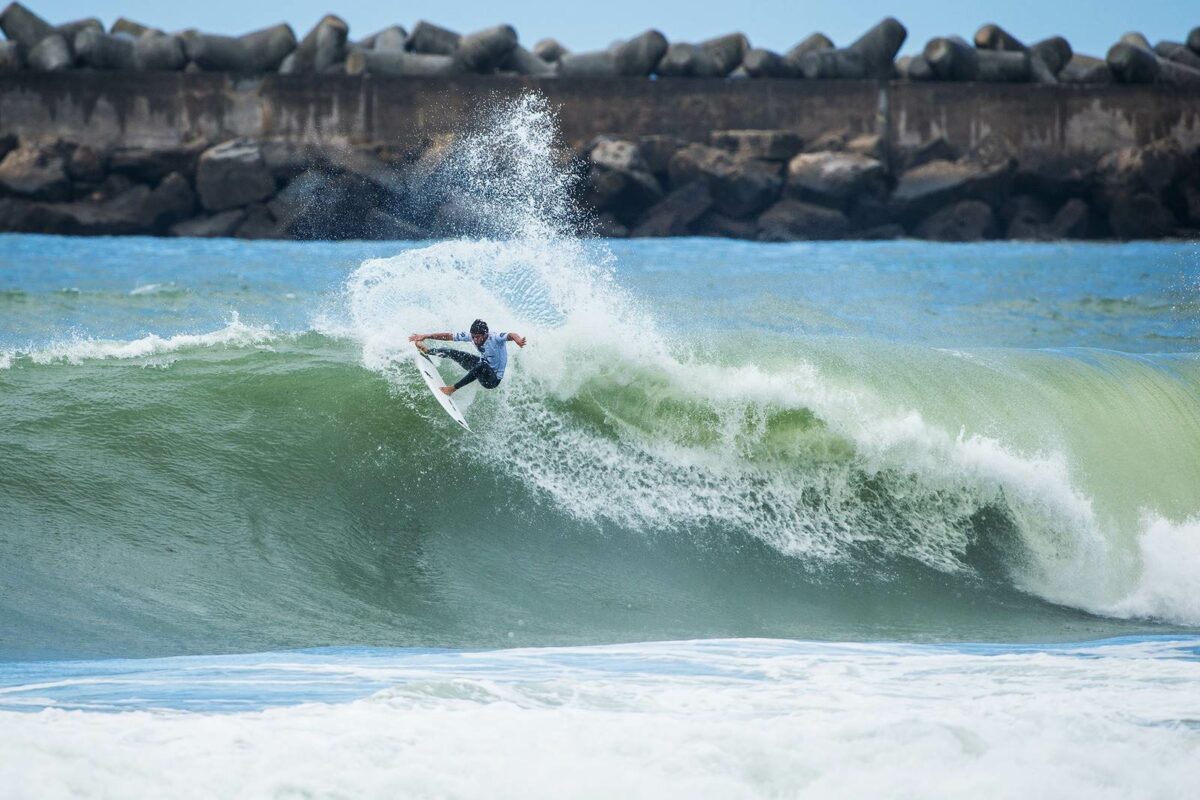 Impressionnant depuis le début de l’épreuve, Jeremy Flores a de nouveau sorti le grand jeu ce matin dans la troisième série du round 4 qui a lancé la journée. Opposé à Vasco Ribeiro (tombeur d’Adriano de Souza au round 3) et Keanu Asing, le Français a facilement dominé sa série et se qualifie pour les quarts de finale. Une première depuis sa victoire à Tahiti en août dernier. “C’était très dur à surfer, et c’était bien plus gros et puissant que ça ne paraissait depuis le bord. J’ai fait un free surf avant le début de la compétition, et j’ai finalement pris une planche plus grande pour ma série. Il y avait un bon wedge sur lequel on pouvait faire de bons turns, c’était fun, mais difficile en même temps” a déclaré Jeremy après son heat.