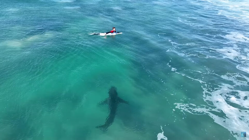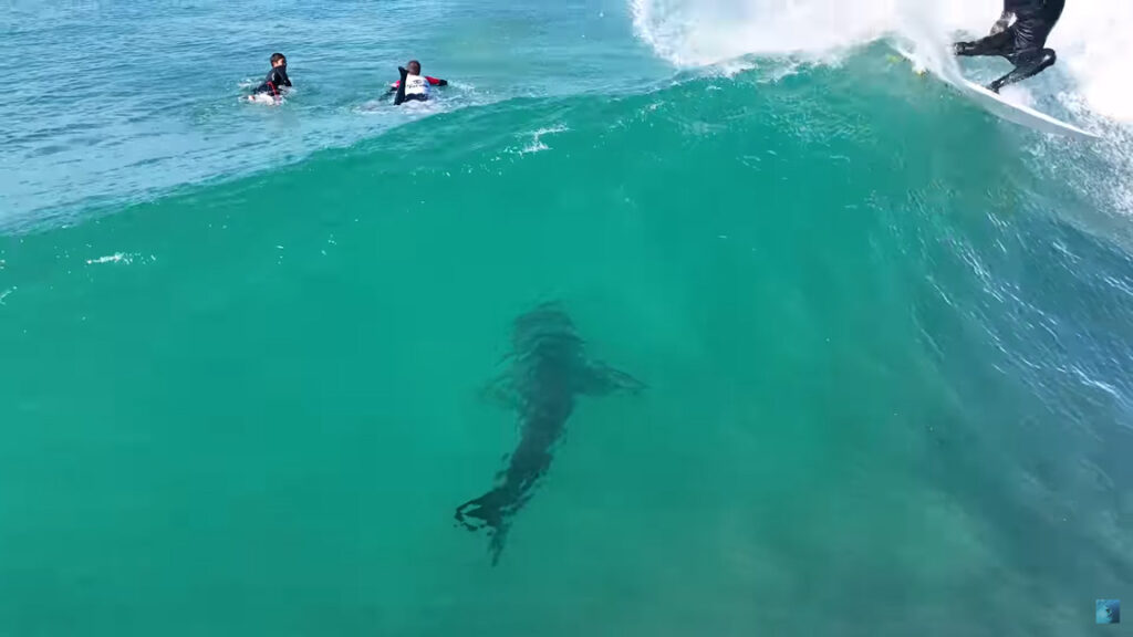 « C’est assez fou, on a vu des groms sortir de l’eau rapidement, je leur ai demandé ce qui se passait et ils ont dit qu’ils avaient été approchés par un énorme requin blanc, assez près pour pouvoir voir ses yeux. On a sorti le drone rapidement pour voir s’il était là, et bien sûr il nageait vers le groupe de surfeurs du World Tour ! Nous avons essayé d’avertir le premier gars avec le drone car nous étions loin, il nous a remarqué et a levé ses jambes mais n’a pas vu le requin, c’était Rio Waid (à partir de 4mn20 dans la vidéo NDLR). Ensuite il a pris le spray de Ian Gentil et a regardé avec curiosité le surfeur sud-africain Eli Beukes ! On a alerté des gens sur la plage qui ont alerté les surfeurs. Tous sont sortis, le requin a continué son chemin le long de la côte et tout le monde a passé une bonne journée ! C’est une chance inouïe d’en voir un comme ça ! L’Afrique du Sud est incroyable !«