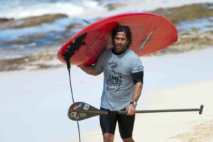 Il suit le World Tour à temps plein depuis cinq ans. Rencontre avec ce Bra Boy qui gère la condition physique de Taj...