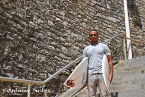 Le surfeur pro réunionnais était de passage sur ses terres natales il y a quelques jours. Entretien et photos sur fond de granite et de crêpes Suzette...