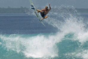 L'Hawaïen a reçu 50 000 $ des mains de Tony Hawk grâce à un stalefish air reverse réalisé lors d'un récent trip aux Mentawai.