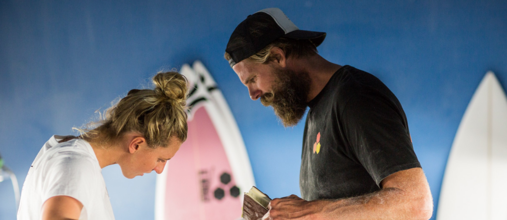 B.M – Ezekiel Lau par exemple. Il apprend en ce moment le shape. Au départ il ne connaissait rien à propos des planches. Mon père m’a aussi appris à éduquer les surfeurs au shape et aux planches. Nous shapeurs, nous devons pouvoir avoir la possibilité d’échanger avec les surfeurs si l’on veut progresser. Mais parfois ils ne savent pas pourquoi la planche réagit comme ça ou comme ça. C’est notre rôle de les éduquer. J’ai envie de dire à Zeke Lau, pourquoi sa planche se comporte comme ça. Lui expliquer pourquoi je veux raccourcir le tail ou le rocker. Et les surfeurs eux même s’améliorent car en comprenant leurs planches ils surfent mieux. Plutôt que de sortir surfer, s’énerver sur une planche et ressortir frustré, je veux qu’ils se disent : comment je peux l’améliorer. Mon père a passé tellement de temps avec ses surfeurs à leur expliquer comment ça fonctionne.