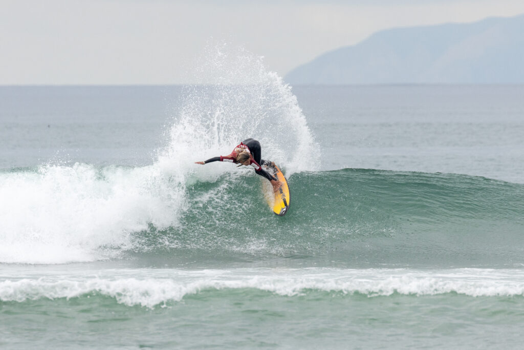 C’est compliqué de performer dans ces vagues donc ce type de planche plus large avec plus de volume, un nose plus plein et moins de rocker (une planche plus plate) permet de prendre de la vitesse même dans du petit. Sur cette planche, je lui ai fait une asymétrie au tail pour justement accentuer la vitesse dans des vagues qui n’ont pas d’énergie. Elle adore cette planche donc je suis contente. On a adapté ses planches aux vagues, si c’est une vague creuse elle a une planche avec plus de rocker par exemple.
