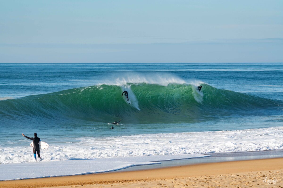 Quand les conditions sont velues à la Nord à Hossegor, en free surf ou lors du Challenge La Nord, il n’est pas rare de voir les poissons de Manu filer à toute vitesse dans un barrel, sous les pieds de Louis, son fils, très bon surfeur lui aussi. Si lors des gros jours, les planches surfées sur le spot landais sont adaptées aux grosses vagues, celle de Louis l’est encore plus. En un sens, sa planche est symboliquement destinée à la fameuse vague landaise. En effet, Louis a grandi en surfant et si plus jeune, il a fait de la compétition, il fait aujourd’hui partie des maîtres locaux en matière de tuberiding.