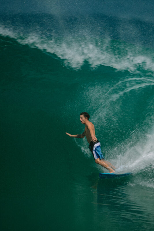Ensuite, Julien a pu prendre deux vagues aussi. On sentait qu’une partie de la mission était accomplie : rentrer dans le spot, comprendre ces vagues, voir les locaux à l’œuvre, et faire partie de cette journée incroyable.