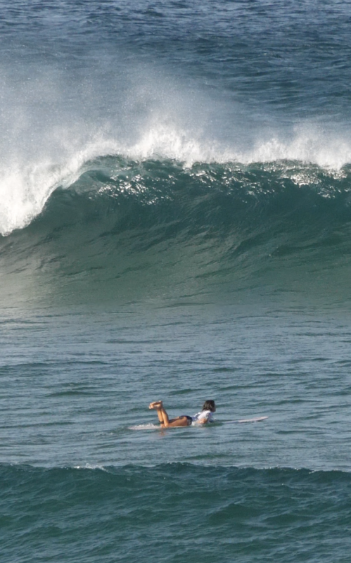 Quand je lui ai dit que je voulais y aller à la rame, Ramon m’a dit que j’étais responsable de moi-même. Il était évidemment là pour venir me chercher si la série décalait ou pour me refaire passer la barre depuis le bord une fois que j’aurais pris une vague. Il était aussi là pour venir me chercher si les choses tournaient mal et me retrouvais trop proche de la falaise. Mais il m’a bien dit que ce n’était pas du step off et qu’il n’allait pas me placer pour que je prenne la meilleure vague possible. Pour ça il fallait que je m’arrange avec moi-même. J’étais d’accord avec ça.