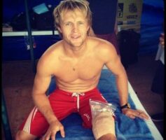 L'australien déjanté va devoir rester hors de l'eau quelques temps après avoir subi de multiples fractures à la jambe gauche il y a 2 semaines...