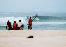 Les deux surfeurs profitent d'un trip au Gabon pour y découvrir la culture locale mais aussi quelques gauches.