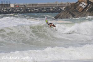 Du swell et du vent, plutôt inhabituelles comme conditions estivales, n'en déplaise cependant à Hugo Dubosc, Tristan Guilbaud, Ramzi Boukhiam, Dimitri Ouvré et Hugo Palmarini qui scorent sur le spot de repli de la Barre à Anglet. La journée d'hier était quand même mal partie, mais une petite fenêtre de beau temps et de vent faible a permis à tout le monde de sortir de chez soi et de pouvoir s'éclater sur une longue droite.De bonne augure avant la prochaine étape du tour européen junior ASP qui aura lieu à St Sébastien à partir du 21 au 24 juillet.Photos par Antoine Justes