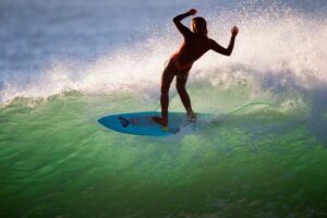 À Biarritz et ses alentours, la surfeuse profite de chaque instant.