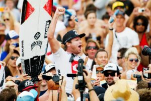 L'Australien s'est imposé cette nuit pour la troisième fois sur la fameuse droite face au Brésilien Adriano de Souza, et prend ainsi les commandes du World Tour.